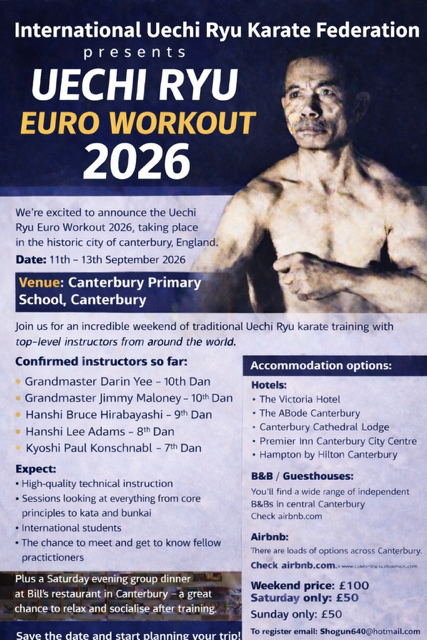 HomeEvents Events Uechi Ryu Euro Workout 2026 IUKF By Web Administrator April 20, 2026 0 15 Facebook Share Facebook Previous articleQUARTERLY NEWSLETTER MARCH 2026 Web Administratorhttps://yoshukai-argentina.comCecilia Salbuchi is a web developer and Karate-Ka. Check my projects at www.sitefun.com.ar Related Articles I.U.K.F. QUARTERLY NEWSLETTER MARCH 2026 Events WinterFest 2026: A Global Gathering of Uechi-Ryu Karate Events George E. Mattson 2026 WinterFest Complete Event Schedule LEAVE A REPLY Cancel reply Comment: Please enter your comment! Name:* Please enter your name here Email:* You have entered an incorrect email address! Please enter your email address here Website: Save my name, email, and website in this browser for the next time I comment. Δ Stay Connected1,852FansLike0SubscribersSubscribe Latest Articles I.U.K.F. QUARTERLY NEWSLETTER MARCH 2026 Events WinterFest 2026: A Global Gathering of Uechi-Ryu Karate Events George E. Mattson 2026 WinterFest Complete Event Schedule I.U.K.F. IUKF Organization Announcement Effective January 1, 2026 Master Ranks Kristin Amirault 7° Dan Load more