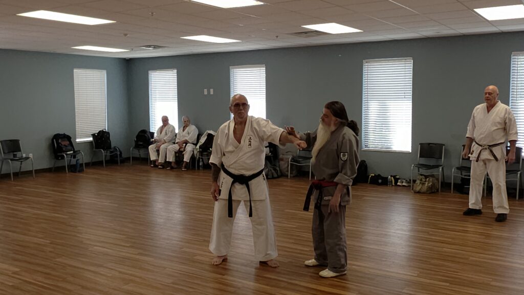 A central theme of the event was the study of the principles often referred to as “The Old Way”—the traditional approach to Uechi-Ryu taught by masters such as Kanei Uechi and Ryuko Tomoyose. These principles emphasize natural body movement, efficient power generation, interception and control, and the seamless flow of technique throughout kata and applications.